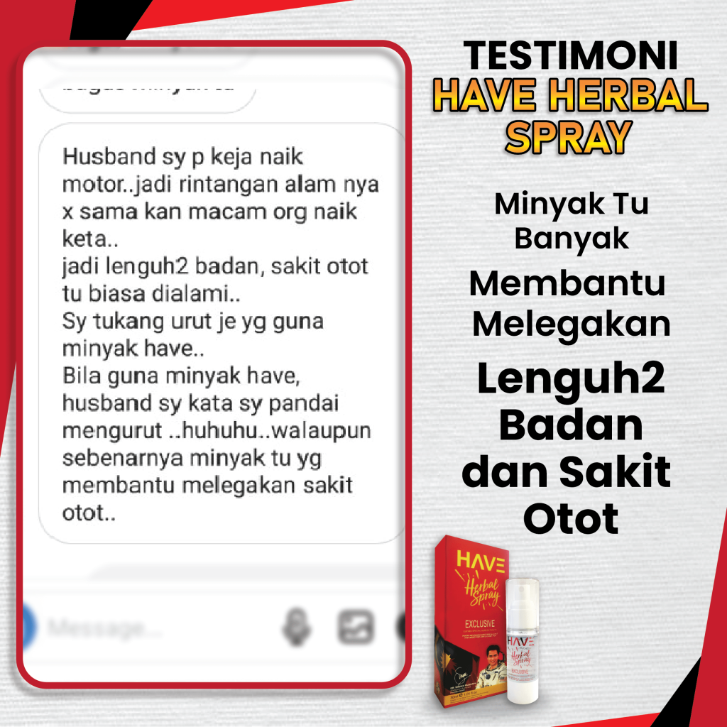 Insyallah, produk ni instant effect. Kebiasaan lepas apply je 10 saat akan merasakan perubahan pada lutut. Dengan teknologi ‘Nano Herba’ yang digunakan dalam HAVE melegakan terus punca sakit lutut tanpa mengharapkan ubat tahan sakit.